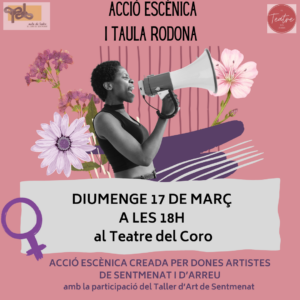 El pròxim diumenge 17 de març a les 18 h al Teatre del Coro; des de l’AULA DE TEATRE del Coro us volem presentar una acció escènica creada per un grup de dones que es dediquen al món de les arts; dones del poble i dones d’arreu.